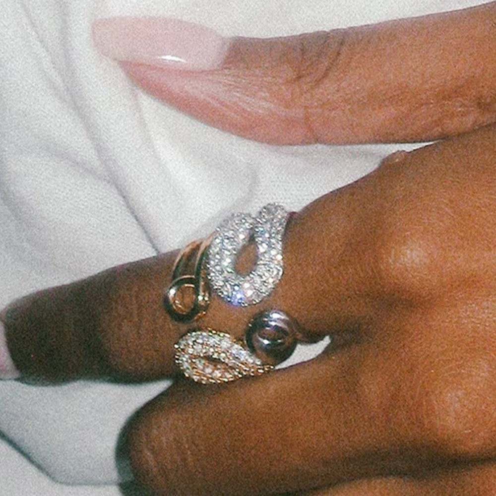 En ring som symboliserar både tur och elegans. Den skimrande U-formen är pavéinfattad med klara kubiska zirkoner som fångar ljuset vid varje rörelse. Den öppna designen gör ringen justerbar och bekväm för de flesta fingrar.